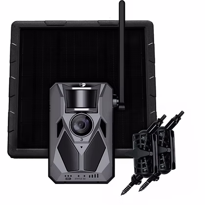 Paketet innehåller en uppladdningsbar lithium-solpanel som tillsammans med kameran ger cirka 20 000 mAh total kapacitet. När solpanelen behöver laddas fortsätter kameran drivas av sitt interna batteri – utan driftavbrott.