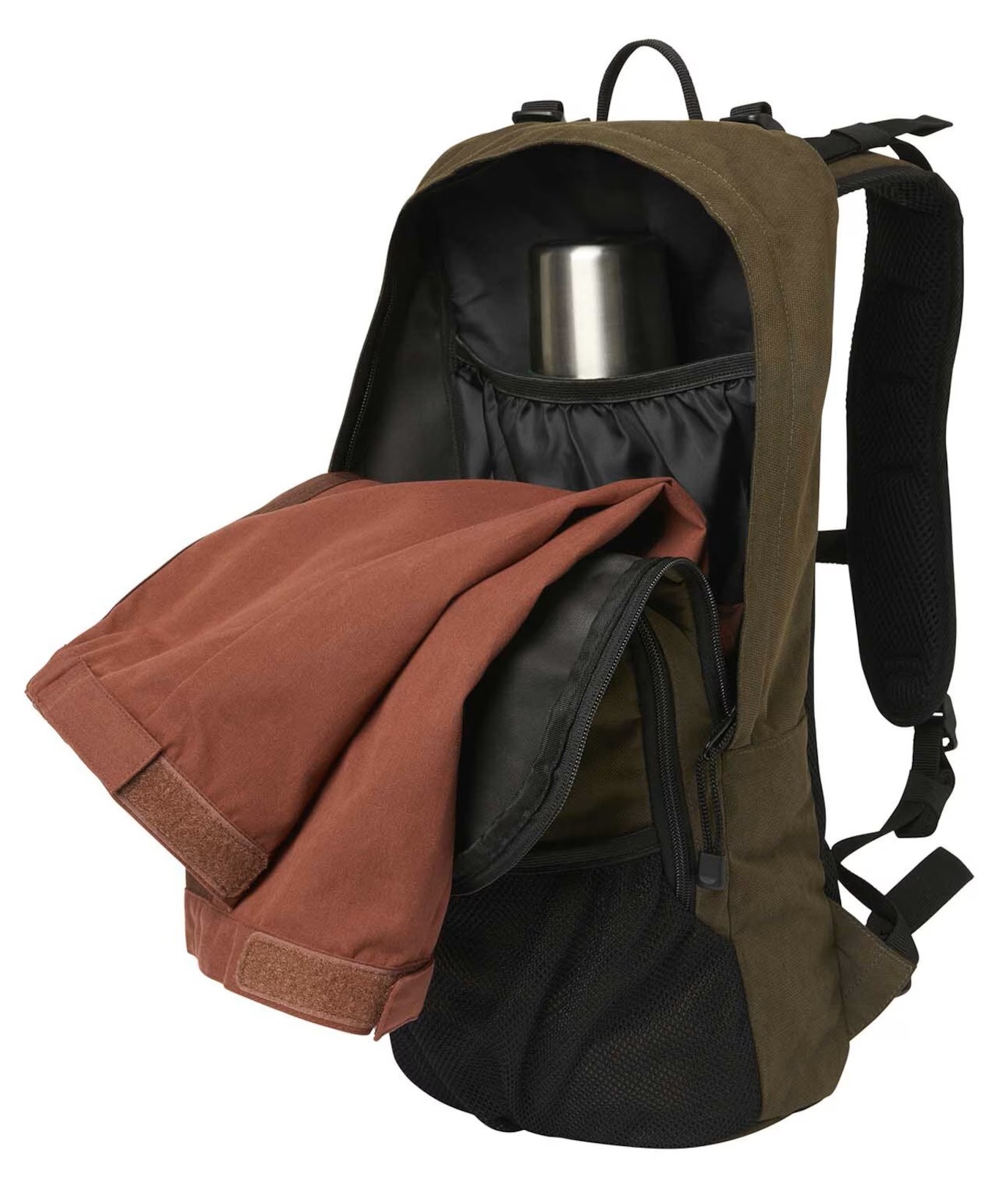 Day Pack Slim är en lätt och smidig ryggsäck. Den passar för en kortare utflykt i skogen eller vid exempelvis smygjakt. Storleken ger plats för lättare klädombyten, vattenflaska, kikare etc, sådant du behöver för en dag. Ryggsäcken har en stort fack som öppnas och försluts med en tvåvägsdragkedja, samt ett mindre separat fack inuti. Ytterst har den en mindre dragkedjeförsluten ficka med en meshficka. De justerbara axelremmarna är tillverkade utan onödiga detaljer så att du lätt ska kunna anlägga ett gevär.Ryggplattan är försedd med en ergonomiskt formad air-mesh för ökad komfort.Volym 15L, vikt 460 gram