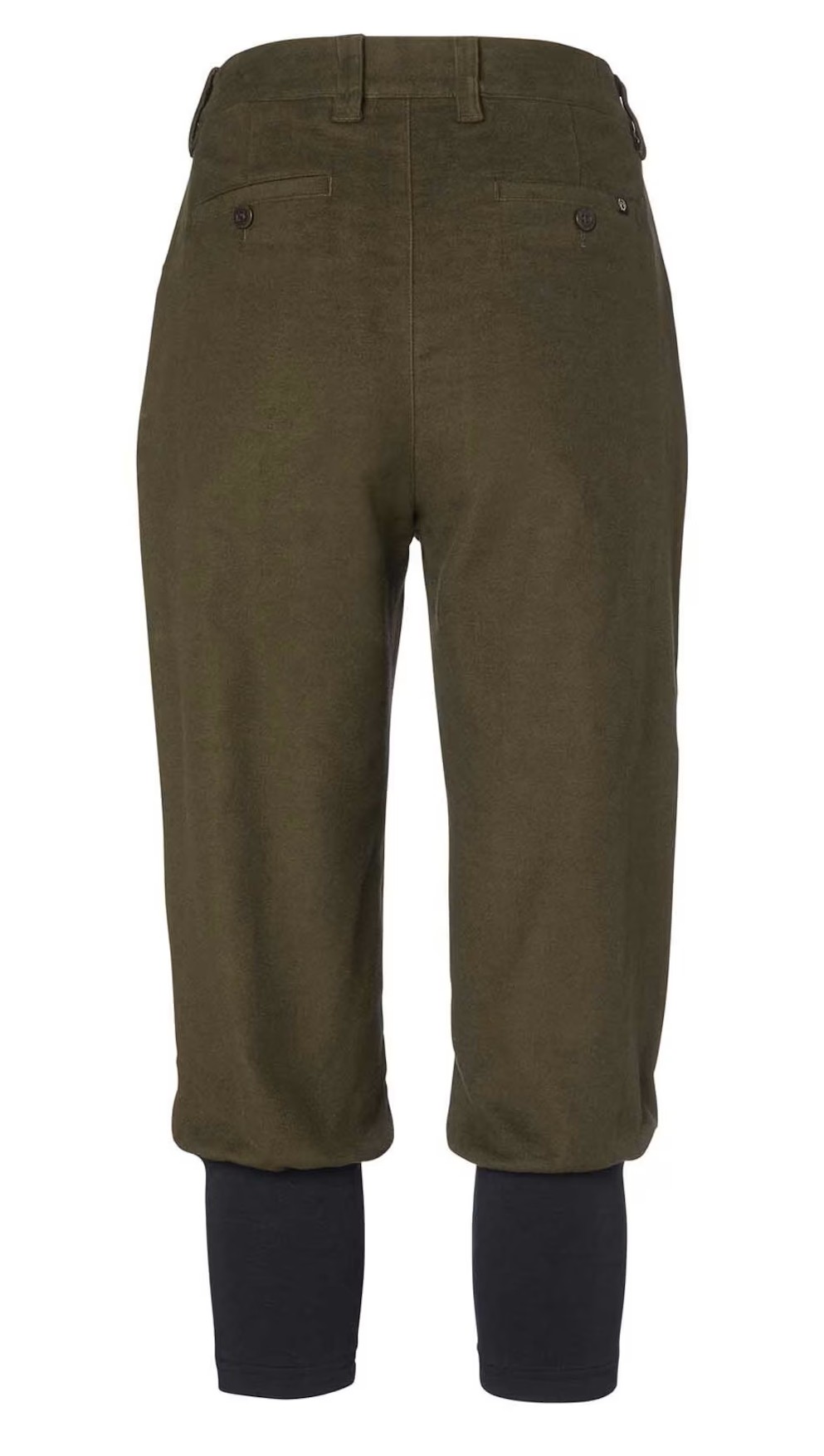 Elemore Moleskin Breeks Women är ett par klassiska jaktknickers för dam – tillverkade i ett mjukt, slitstarkt och tyst moleskinmaterial. Moleskin är ett tätt vävt bomullstyg med borstad yta och lätt stretch, vilket ger både värme och följsamhet – perfekt för jakt där ljudlös rörelse är avgörande.Dessa breeks har en normal passform och är designade för att sitta bekvämt under långa dagar i skog och mark. Midjan är försedd med överviksknäppning för extra komfort, och de elastiska muddarna vid bensluten håller byxorna på plats inne i stövlarna – oavsett hur du rör dig.Funktioner och fördelar: