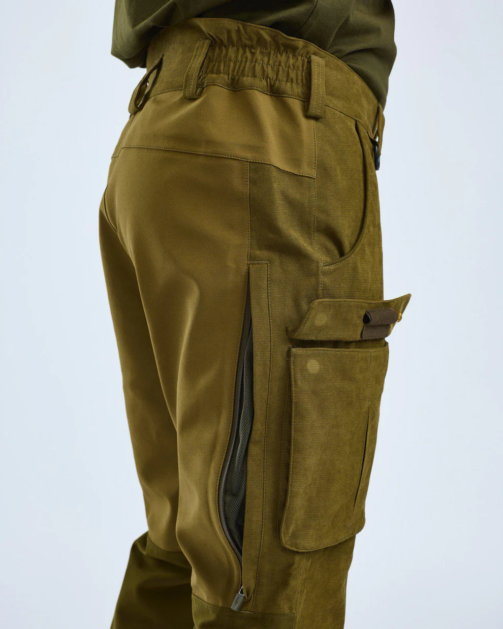 Vind- och vattentäta jaktbyxor med 4-vägsstretch i sätet för extra komfort. Utrustade med ventilationsdragkedjor, fickor med ammunitionshållare samt justerbara benslut. Perfekta för både rörlig jakt och passjakt.