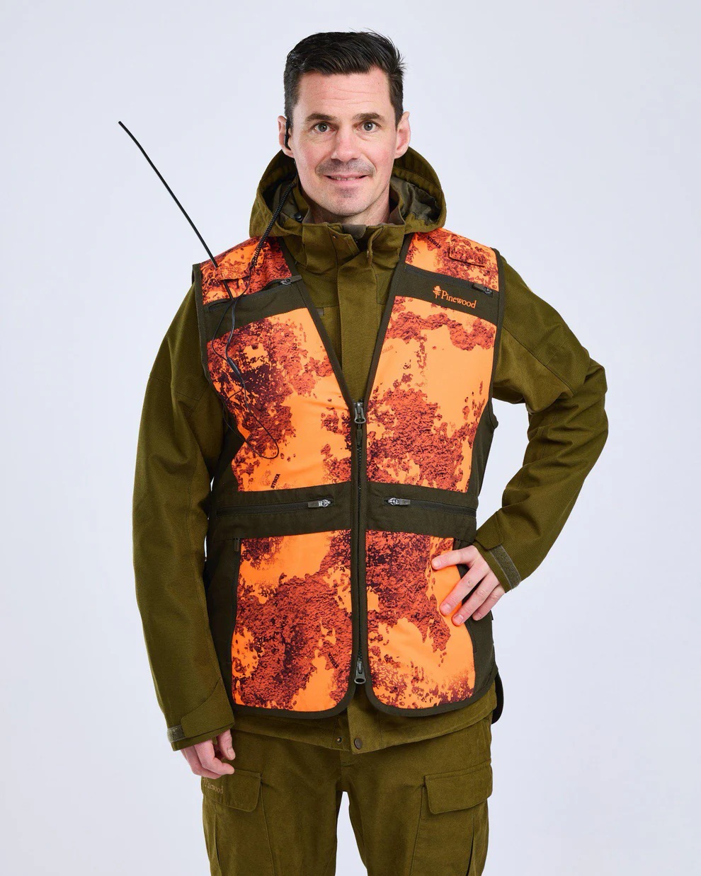 Ryggen har reflexer för extra synlighet, exempelvis för när du behöver göra ett eftersök i vägkanten i skymningen. Yttertyget består av extra slitstark mikrofiber, optimalt för jaktkläder, som är behandlat med en PFC-fri impregnering som gör ytan vattenavvisande. Med praktisk 2-vägsdragkedja kan du öppna västen från två håll, vilket underlättar när du sitter ned. Den är längre baktill och kommer i storlekar upp till 7XL. Om du vill få plats med en tjockare jacka under västen på vintern kan du köpa till en matchande kil för att utvidga västen (art.nr 8122).