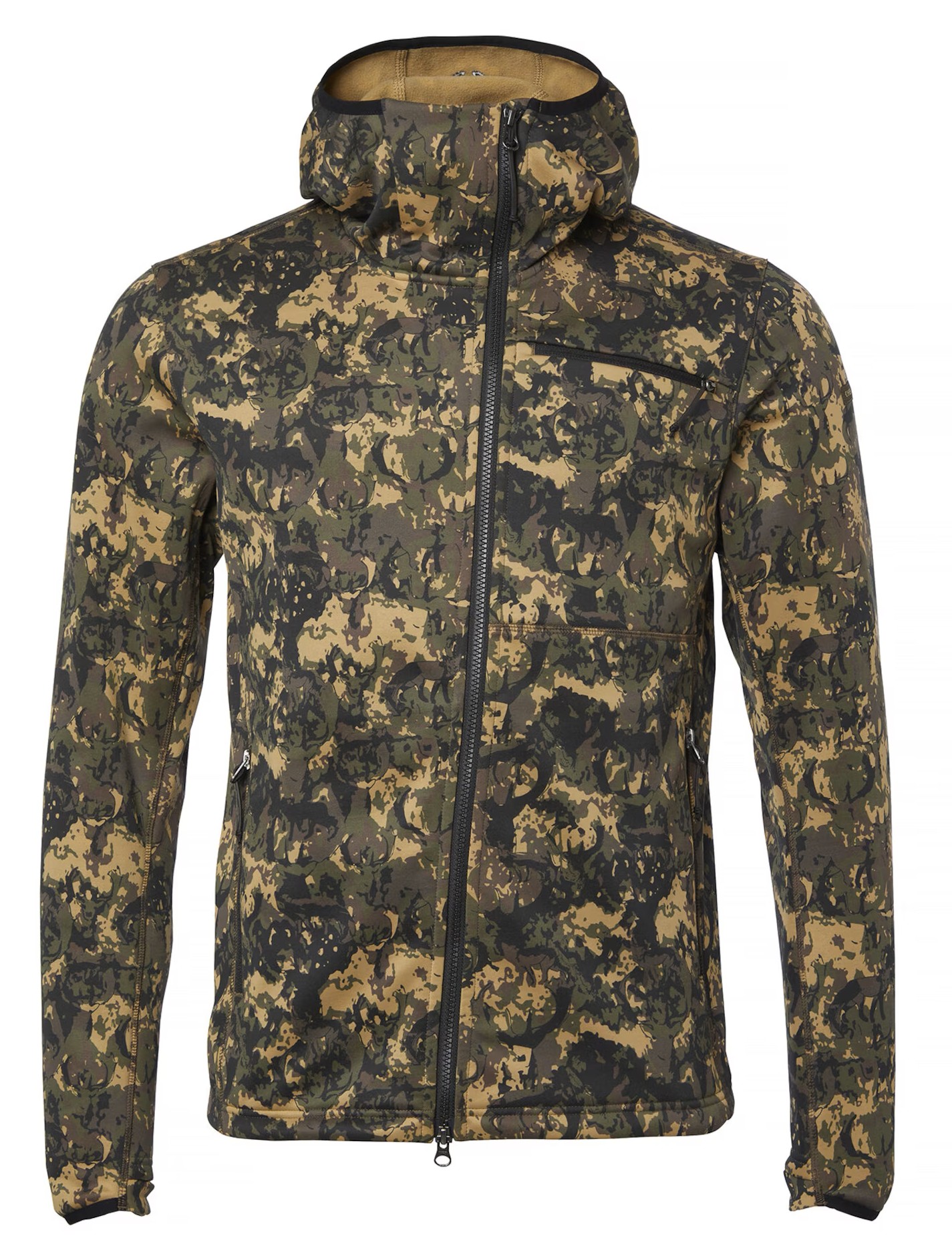 Den unika Chevalier Camo-mönstret hjälper dig att smälta in i naturen, medan detaljer som den asymmetriska tvåvägsdragkedjan från YKK och den fasta huvan med låg profil ökar funktionaliteten. Den aktiva passformen gör att plagget sitter nära kroppen utan att begränsa rörelseförmågan. Genomtänkt funktionalitet för jägare och friluftsfolk: