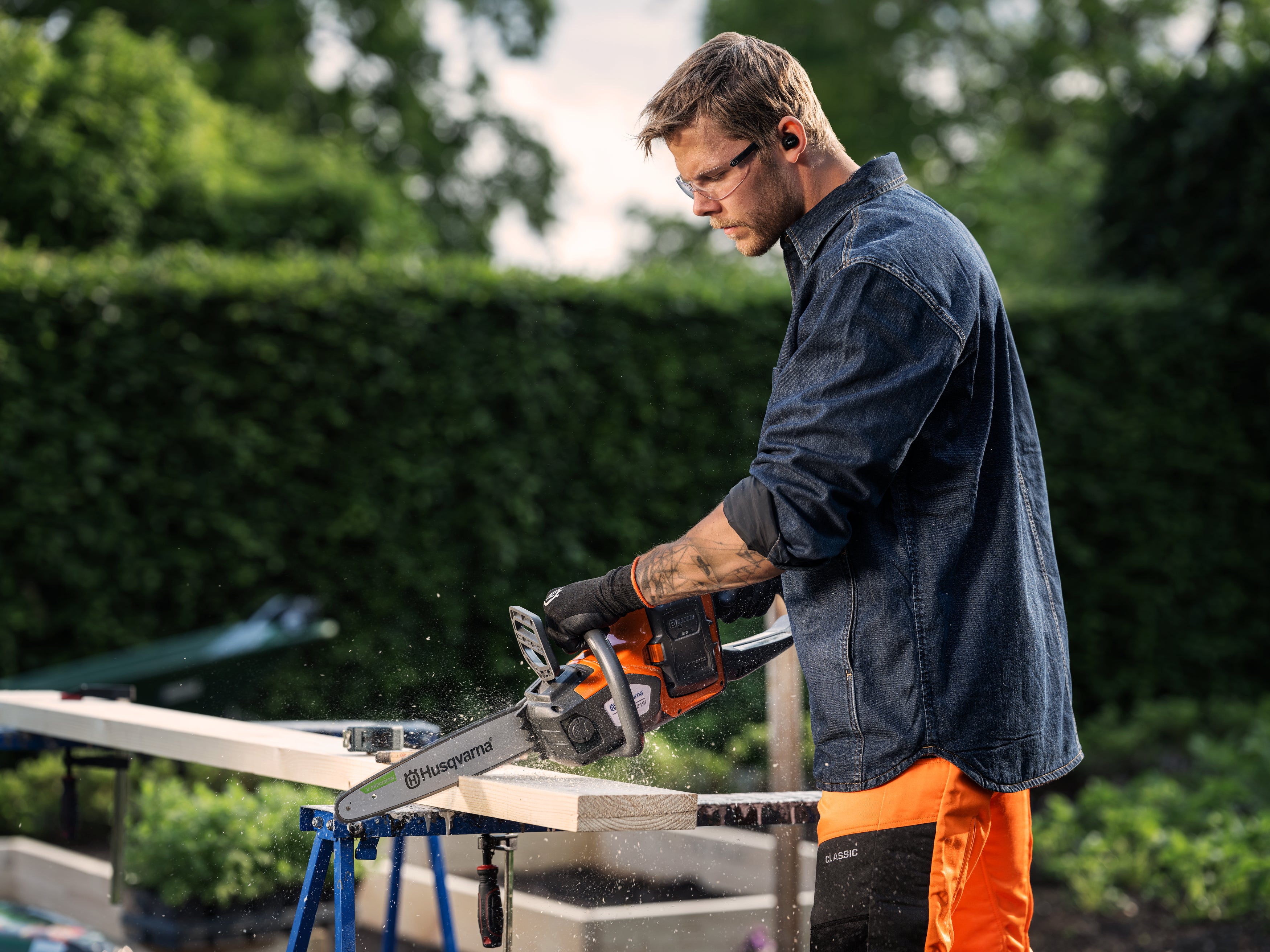 Konsten att såga exakt. Kompakt batteridriven motorsåg för trädgårdsarbete