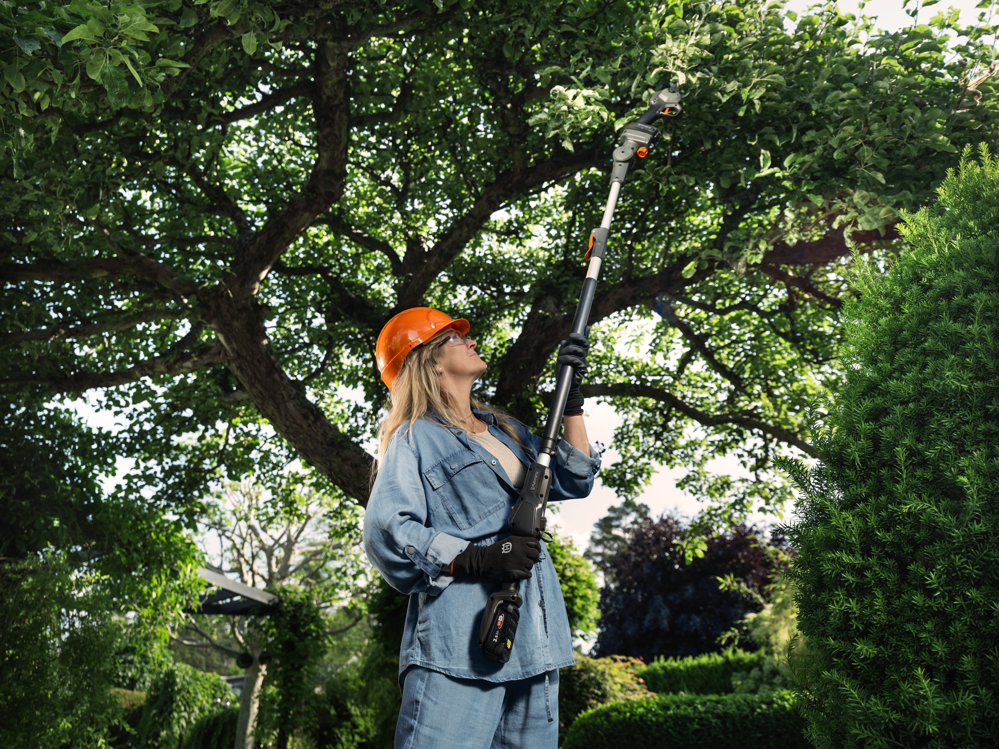 Husqvarna Aspire™ PS30X är en kompakt men högpresterande batteridriven sekatör som är gjord för exakt och effektiv beskärning i trädgården. Oavsett om den används i handhållet utförande eller kopplas till Aspire™-teleskopskaft för längre räckvidd erbjuder den, den kontroll, komfort och kraft som behövs för beskärningsuppgifterna. Skärbladet följer alltid gasreglaget och ger perfekt kontrollerade snitt. Den tåliga borstlösa motorn är utformad för långsiktig prestanda och ger hög effektivitet och mindre underhåll jämfört med motorer med borstar. Med den inbyggda snabbguiden ger produkten tydlig information om de viktigaste funktionerna. Du får även enkel, effektiv användning och en tydlig översikt över batteristatus via det intuitiva digitala gränssnittet. Förvaringen är enkel med den medföljande kroken och 18 V POWER FOR ALL ALLIANCE-batterisystem ger både flexibilitet och mindre förvaringsbehov eftersom ett batteri kan användas för flera olika verktyg och trädgårdsvarumärken.