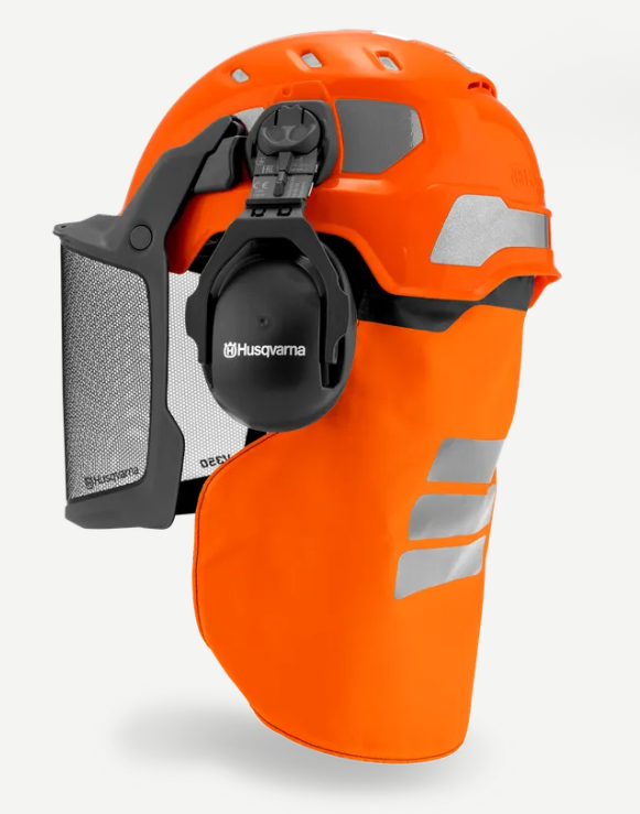 Skyddande skogshjälm med hörselskydd, visir och nackskydd. Husqvarnas Technical-hjälm är robust men lätt och har utformats för att vara modulär, så att du kan byta visir och hörselskydd för att passa alla förhållanden. Visiret omsluter ditt ansikte och ger ett utmärkt synfält oavsett om det är nedfällt eller i standbyläge, så att du får obehindrad sikt upp mot trädtopparna. Hjälmen sitter bekvämt så att du kan rikta full uppmärksamhet på dina arbetsuppgifter. Finns i två färger för att passa din stil och miljö.