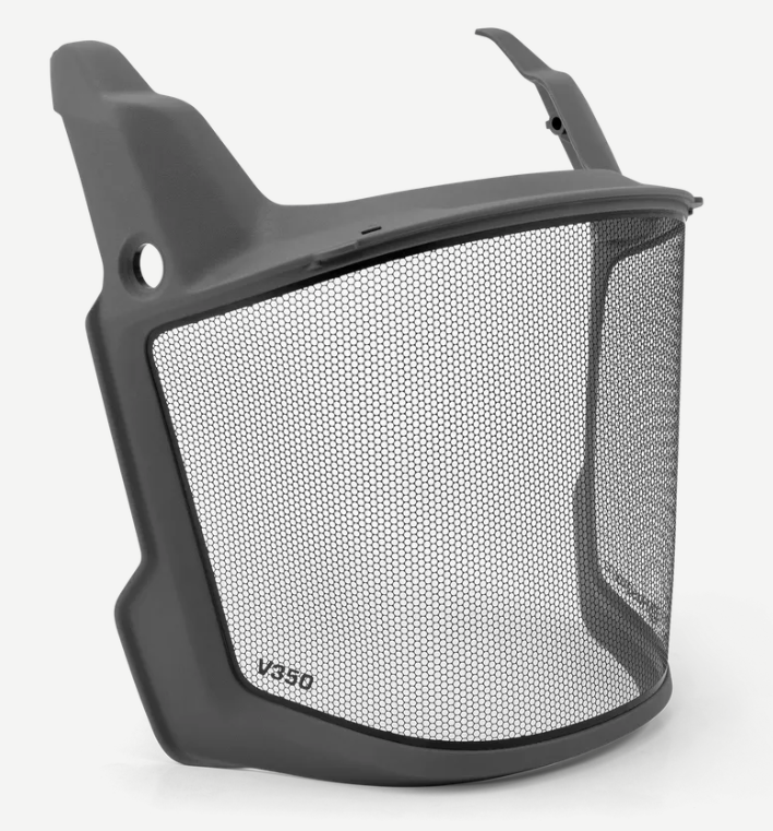 Visir för Husqvarna Technical skogshjälmar. Dess unika design säkerställer en fri sikt både i uppfällt och nedfällt läge.