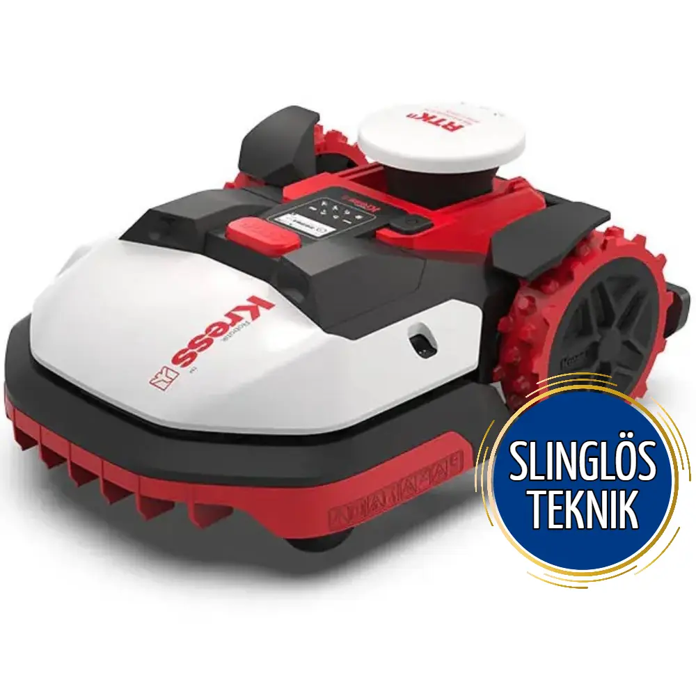 Den nya robotgräsklipparen Kress KR172E RTKn levererar noggrannhet på centimeternivå utan ytterligare hårdvara på din tomt. Inga antenner. Inga fyrar. Inga begränsningskablar.