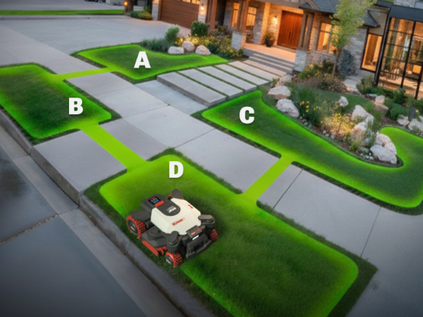 RTK-noggrannhet säkerställer konsekvent navigering mellan flera gräsytor.