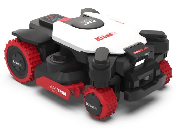 Utvecklad för krävande miljöer. Kress EyePilot® 4×4 RTKⁿ KR285E kombinerar RTKⁿ-satellitpositionering med en smart kamera och äkta fyrhjulsdrift för exakt och stabil navigering i komplex terräng utan extra antenner.Ett fyrmotorigt drivsystem med momentkontroll i realtid bibehåller grepp och riktning i lutningar upp till 84% (≈40°), medan oberoende axlar och ledad konstruktion håller alla fyra hjul i kontakt med marken och klippdisken rak på ojämnt underlag.Framhjulsstyrning möjliggör snäva svängar utan att skada gräset, och en markfrigången upp till 6 cm ger säker passage över kanter.RTKⁿ-korrigering levereras trådlöst och stöds av en redundant positioneringsarkitektur för tillförlitlig noggrannhet även vid försvagad satellitsignal. Wi-Fi eller integrerad 4G säkerställer kontinuerlig drift utan löpande kostnader och 5 års kostnadsfri 4G-anslutning är inkluderat.