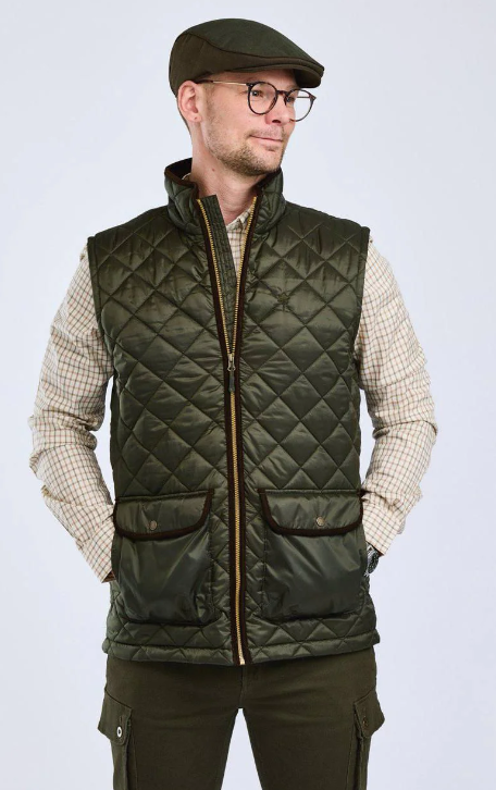 Vadderad herrväst med elegant snitt, passar ypperligt för godsjakten och till vardags. Den är vindtät och skyddar mot lättare väta, och kan göras större nedtill med hjälp av tryckknappar.