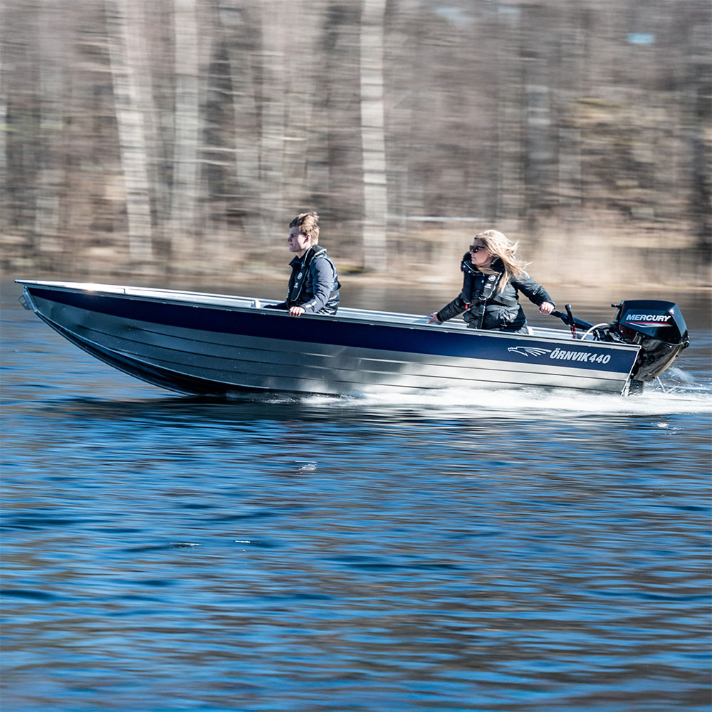 Örnvik 440 är en mångsidig och rymlig aluminiumbåt, perfekt för fiske, transport och fritidsäventyr. Rymlig och stabil båt med fina sjöegenskaper för sjöar och kustnära vatten.