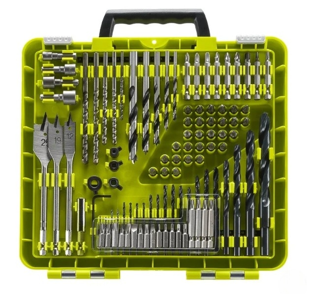 - Borr- och bitsset 100 delar. 43x 25mm Skruvdragarbits - PZ1 x2, PZ2 x4, PZ3 x2, PH1, PH2 x2, PH3, HEX1.5, HEX2, HEX2.5, HEX3, HEX3.5, SQ1, SQ2, SQ3, SL4-5, SL6-8, TX6, TX7, TX8, TX9, TX10, TX15, TX20 x4, TX25 x4, TX27, TX30 x4, TX40 and 1x Magnetisk bitshållare. 13x 50mm Skruvdragarbits - PH1, PH2, PH3, PZ1, PZ2 x2, PZ3, TX15, TX20 x2, TX25 x2, TX30 x2. 3x Flatborr - 12, 19, 25mm. 5x Träborr - 4, 5, 7, 8, 10mm. 5x Betongborr 4, 6, 7, 8, 9mm. 21 x HSS-borr - 1.5 x2, 2 x2, 2.5 x4, 3.2 x2, 4 x2, 5, 5.5, 6, 6.5, 8.0, 10, 13mm. 4x Hex-adapters - 6, 8, 10, 11mm. 4x Borrstopp - 3.0, 4.5, 6.0, 8mm. 1x insexnyckel.
