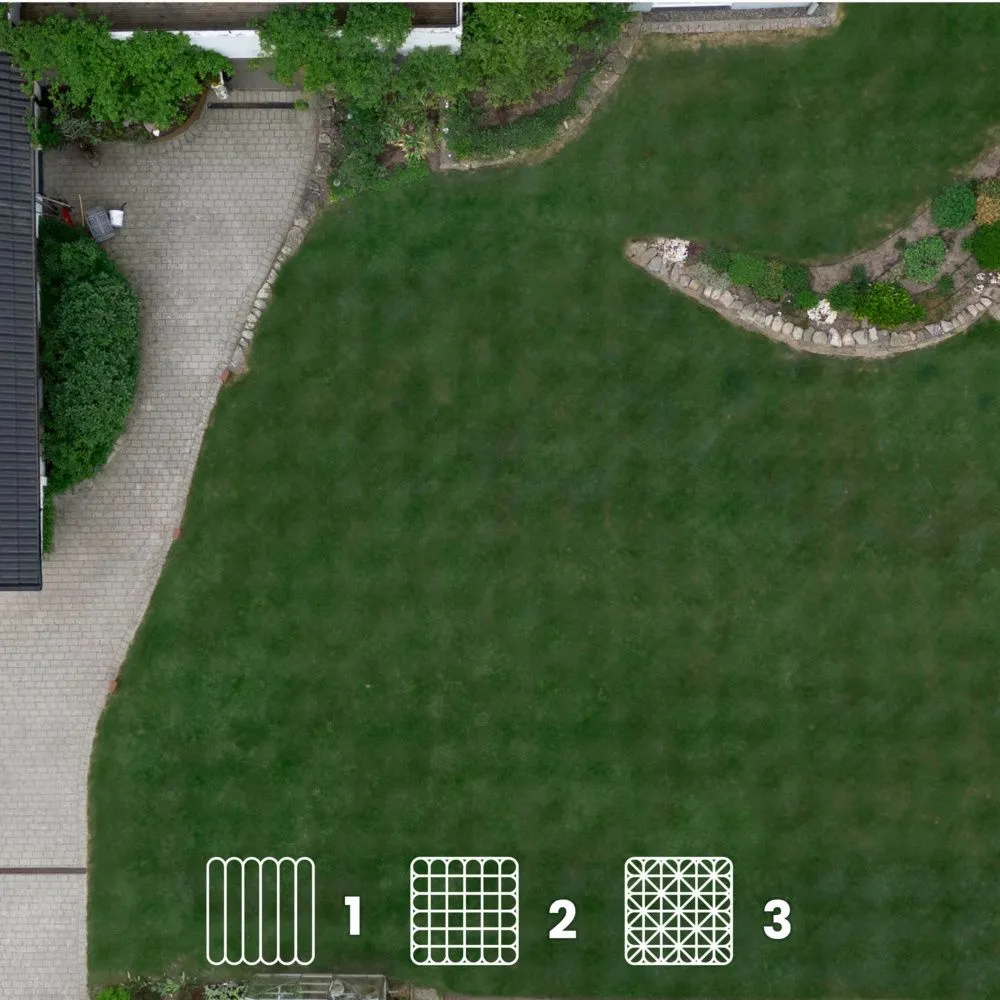 Roboten skapar sömlösa ränder utan märken, överlappar precis tillräckligt för att undvika missade strån och vänder försiktigt för att inte lämna några spår. Välj mellan parallella, vinklade eller rutmönstrade effekter, även över olika zoner, och njut av ren klippning från kant till kant tack vare kantklippningen.