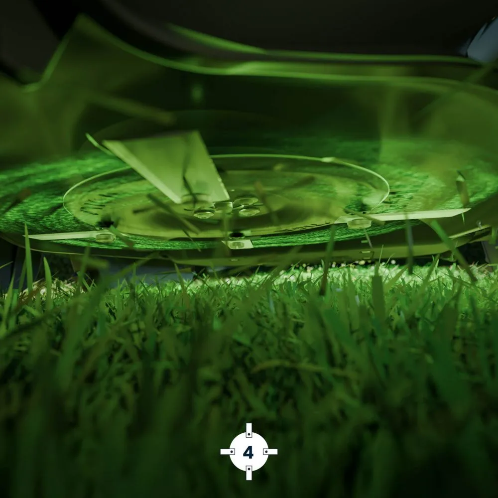 - Utrustad med integrerade sensorer och AI-driven kamera för att undvika hinder och klippa ända till kanterna.