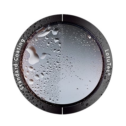 - Patenterad LotuTec® linsbehandling som gör linserna resistenta mot, smuts, fukt och vattendroppar.